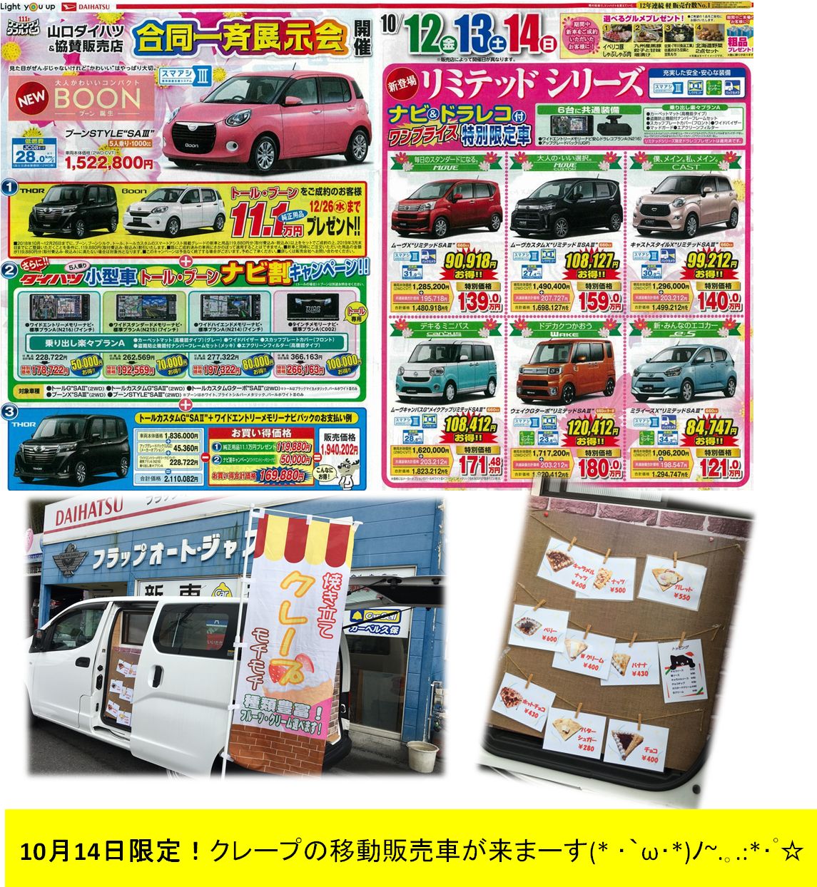10/13・14日ダイハツ合同イベント開催(*´▽`)ノ ・゚:*:゚★