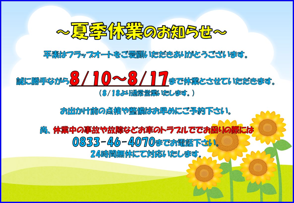 夏季休業のお知らせ