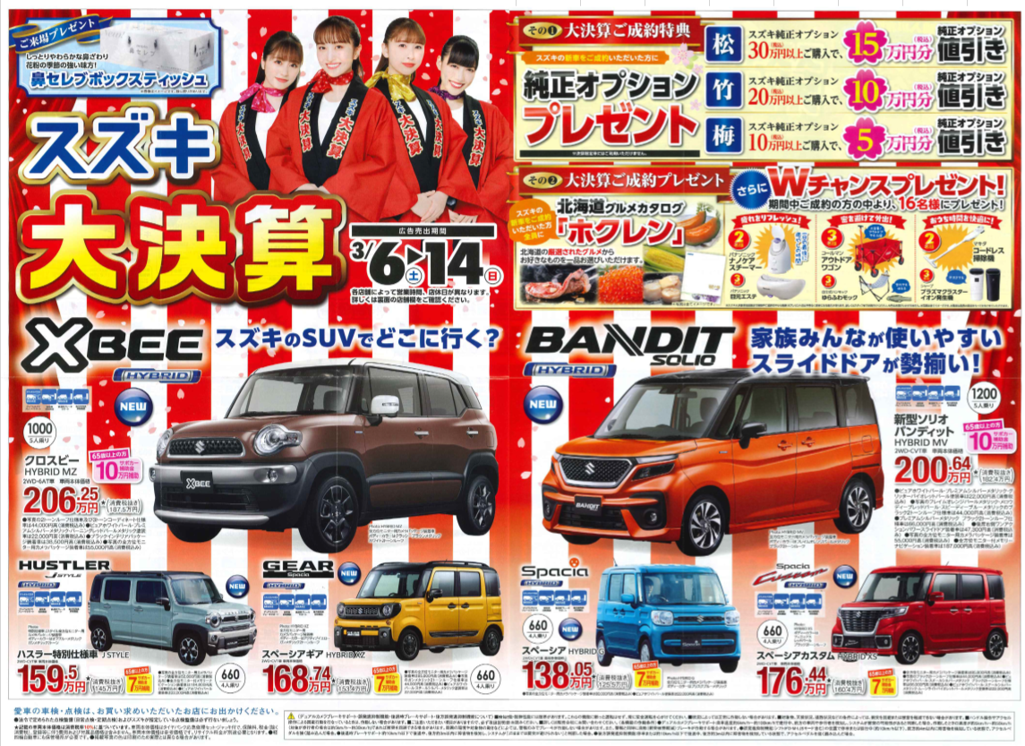 スズキのイベントでは、大決算ご成約特典・ご成約プレゼント💛