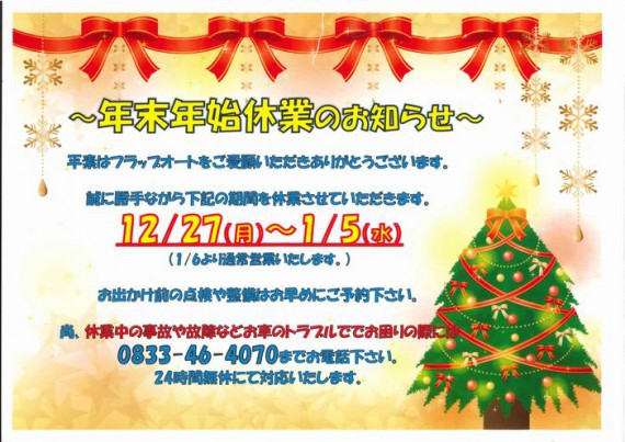 誠に勝手ながら 12/27(月)~1/5(水) の間