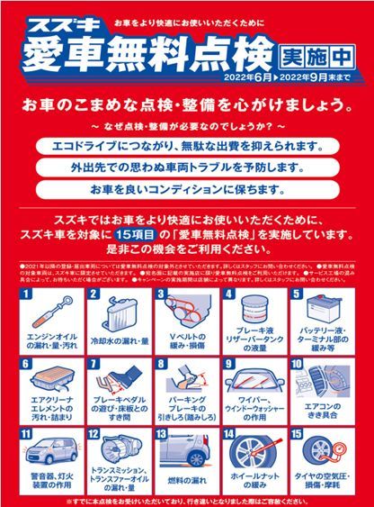 スズキ 愛車無料点検🚗 2022年8月30日 未分類 スズキ 愛車無料点検を実施中❤期間が9月30日までとなりますのでお早めに実施をお願いします!! 早めの予約・ご来店お待ちしております❤ URL Copied!