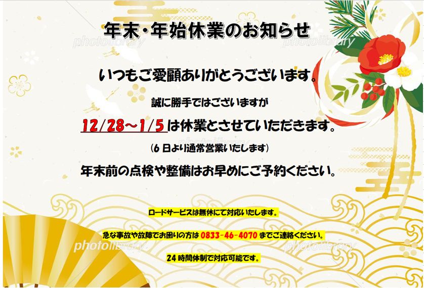 急な事故・故障でお困りの方は0833-46-4070までご連絡ください。