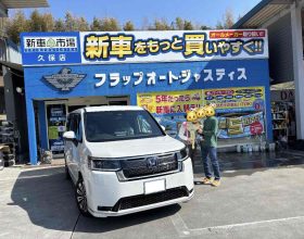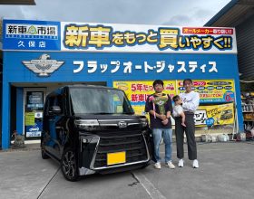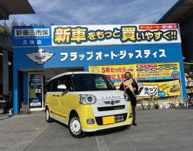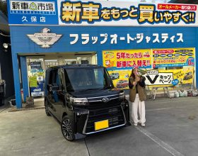 下松市 S様タントカスタム納車です🌟ターボなので加速が楽ちん!どこへでも行けちゃいそう💖両側も電動スライドドアなので荷物の乗せおろしも安心!これから沢山色んな所へ行かれてくださいね🍀 |