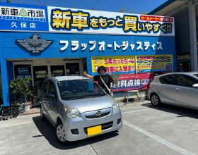 周南市 M様ミラ納車しました~!8インチのナビ&ETC付きで燃費もいいので快適走行💛ということで新愛車と一緒にパシャリ📸✨これから沢山色んな所へ行かれてくださいね🍀 |