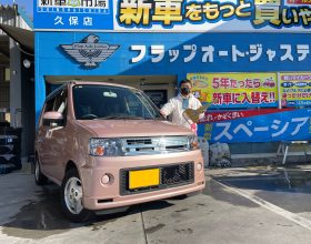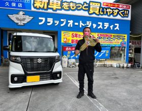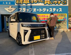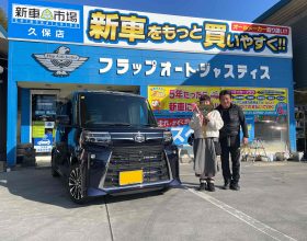 周南市 F様タントカスタム納車です✨写真撮影が夕方だったので眩しそう😎人生初のお車を当店でご購入いただきました💖これからたくさんいろんなところへいかれてくださいね🍀 |