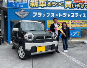広島市 N様ハスラー納車です 😆 遠方からありがとうございます❕英文字ハスラーの色に悩まれてましたが、白色にして統一感がありとても可愛いです💖仲良しご夫婦でパシャリ📸✨ |