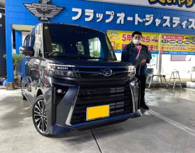 下松市 R様タントカスタム納車です🌟暗くてわかりづらいですが、色はグレーです❣これからたくさんいろんなところへいかれてくださいね🍀💖 |